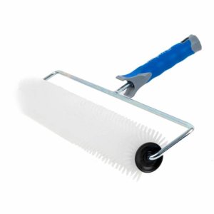 plast PE - polyetylén O 85 mm, výška trnů: 20 mm kovový držák, plastová rukojeť s otvorem na teleskopickou tyč k odvzdušnění samonivelačních nátěrů tenkých a středních vrstev