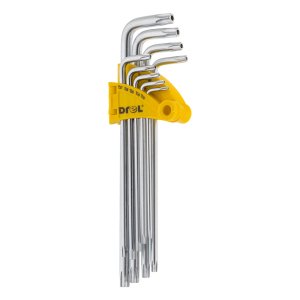 Sada klíčů TORX T10-52, 9díl., prodloužené, DREL. sada obsahuje 9 prodloužených Torx klíčů: T10 T15 T20 T25 T27 T30 T40 T45 T52 materiál: ocel S2 Použití pro šrouby Torx.
