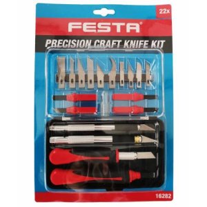 multifunkční sada skalpelových nožů - sada 23 ks ergonomické rukojeti s rychloupínacím úchytem čepelí široké možnosti využití v modelářství, řezbářství, průmyslu dřevěný box