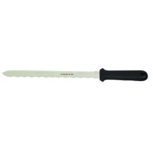 Nůž na minerální vatu Dvojí hrubost ostří pro různé druhy a hustoty minerální vaty, ergonomická rukojeť pro univerzální úchyt, délka čepele 330mm, plastový závěs.