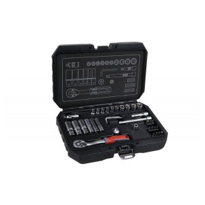 Gola sada 1/4" materiály: z vysoce kvalitní chrom-vanadiové oceli, niklová povrchová úprava, hroty bitů ze slitiny oceli S2, ráčny mají jemné dělení 72 zubů, tělo ráčny z CrV oceli, zubový mechanismus …