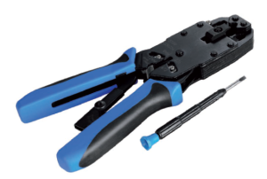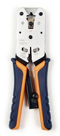 Krimpovací kleště pro upevňování konektorů RJ10,RJ11 a RJ12 na telefonní kabely, pro RJ45 na síťové kabely.