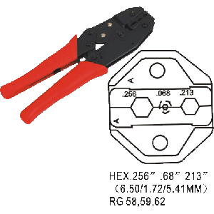 Krimpovací kleště pro upevňování BNC konektorů na koaxiální kabely.