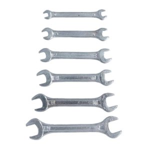 klíče otevřené oboustranné - sada 8ks vyrobeny kováním z vysoce kvalitní CrV oceli rozměry klíčů: 6x7; 8x9; 10x11; 12x13; 14x15; 16x17; 18x19; 20x22 mm sada je dodávána na plastovém držáku DIN 3110