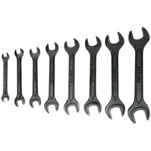 klíče otevřené oboustranné - sada 8 ks rozměry klíčů: 6 x 7; 8 x 9; 10 x 11; 12 x 13; 14 x 15; 16 x 17; 18 x 19; 20 x 22 mm plastový eurozávěs uhlíková ocel DIN 895