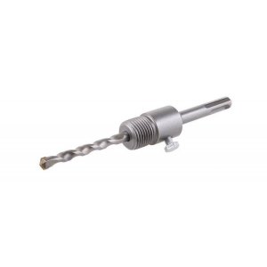 unašeč se středovým vrtákem pro vykružovací BiM korunky 32 - 83 mm (lze použít na velikosti korunek až do 152mm) korunku požadovaného průměru našroubujte na závit unašeče tak, aby do otvorů v korunce …
