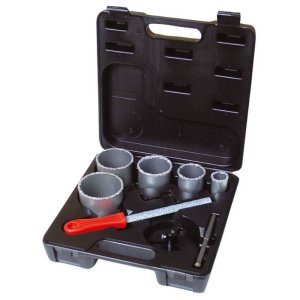 korunka vykružovací - sada 8 ks korunka s karbidovým ostřím pro čisté a přesné vrtání průměry korunek: 33; 53; 67; 73; 83 mm univerzální ALU unašeč speciální vodící vrták pilník baleno v plastovém …
