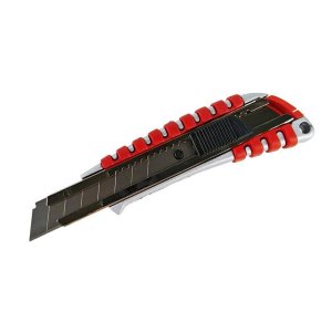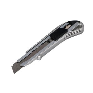 kvalitní odlamovací nože pro 18 mm odlamovací čepel ergonomicky tvarovaná rukojeť kovová vodící lišta automatická aretace čepele šířka čepele: 18mm materiál: kov, plast