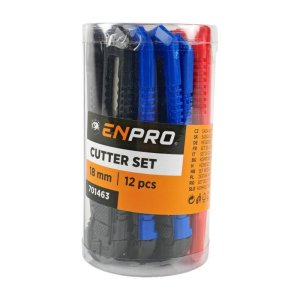 sada odlamovacích nožů - 12ks tlačítkový posuv s aretací šířka čepele 18mm plastová kruhová dóza