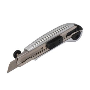 celokovové tělo nože protiskluzová rukojeť s plastovými výstupky kovová vodící lišta šroubková aretace šířka čepele 18mm dva náhradní břity v balení náhradní břity kód: 701572, 701573, 701574