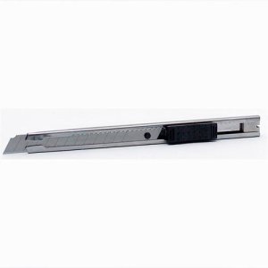 Pevný a odolný odlamovací nůž, břit o šíři 9 mm, uložen v kovovém pouzdře.