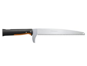 Zahnutá prořezávací pilka Fiskars, délka 55 cm a hmotnost 330 g.