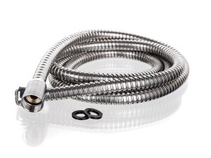 Dvouzámková nerezová spchová hadice s mosaznými maticemi, délka 150 cm, při sprchování se hadice nekroutí.