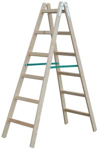 Dvojitý dřevěný žebřík Strend Pro se 6 příčkami se vyznačuje pevnou a stabilní konstrukcí, která zaručuje bezpečnou práci ve výšce.