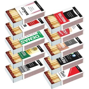 Zápalky vhodné pro použití v domácnosti, při grilování, na zahradě, při kempování, turistice. 8 různých grafických zpracování obalu krabičky zápalek.