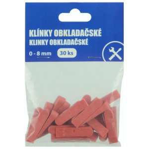 Plastové klínky 0 - 8 mm množství: 30 ks balení: blistr s eurootvorem Klínky obkladačské slouží k zajištění stejné šířky a linie spár při obkládání a dláždění.