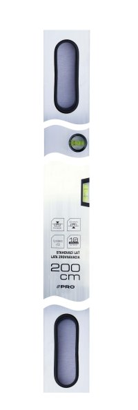 délka: 2000 mm 2 libely: horizontální, vertikální vyztužený profil plastové koncovky Hliníková stahovací lať je vhodná pro orientační měření a srovnávání, kapalina v libelách je fluorescenční.