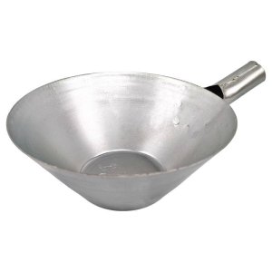 Zednická fanka / naběračka. Průměr 21.5 cm na horní hraně, vhodná na násadu průměr 30 mm.