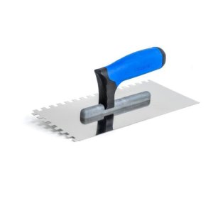 hladítko nerezové 270 x 130 mm - zub ergonomická, dvousložková rukojeť nerezový, kyselině odolný plech tl. 0,7 mm nanášení lepidel, velikost zubů proporcionálně k velikosti obkladaček