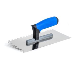 hladítko nerez zubové 270 x 130 mm ergonomická, dvousložková rukojeť (G-1) nerezový, kyselině odolný plech tl. 0,7 mm půlkulatý zub slouží k nanášeníhrubých vrstev lepidel pod obklady a dlažby