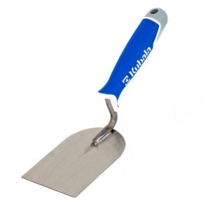 lžíce rohová vnitřní nerezová lžíce vyrobena z kvalitní nerezové oceli rukojeť ergonomická gumová KG1 slouží k omítání a zdění pro odokončovací a štukatérské práce ve vnitřních rozích