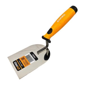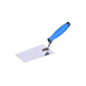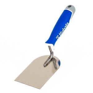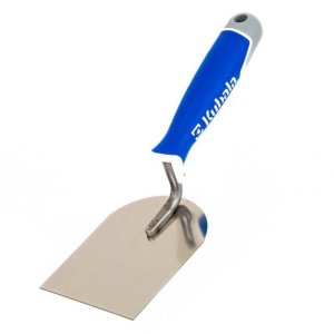 lžíce nerez - rohová lžíce vyrobena z kvalitní nerezové oceli tl. 1mm gumová ergonomická rukojeť používá se zejména k úpravě a začištění vnějších rohů a pro dokončovací práce ve stavebnictví