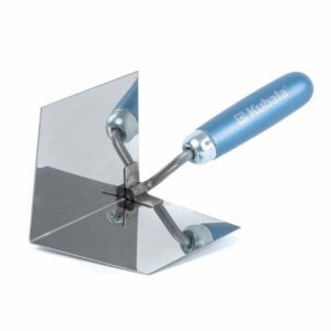 lžíce štukatérská nerez rohová vnitřní KUBALA ergonomická, buková, lakovaná rukojeť nerezový, kyselině odolný plech, tl. 1 mm pro důkladné dokončení rohů