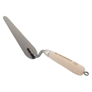 lžíce zednická trapézová ergonomická, vyvážená, buková rukojeť ocelová, oboustranně broušená, tl. 1,2 mm, svařovaná pro zednické práce
