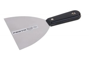Špachtle FESTA. šířka břitu: 100 mm materiál: ocel, dřev. rukojeť Klasická špachtle vhodná jak na oškrabování zdí tak na vyspravování prasklin, prohlubní, děr a dalších mechanických vad.