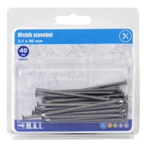 rozměry (D x pr.): 80 x 3,1 mm 40 ks Stavební hřebíky jsou nejběžnějším druhem hřebíků a najdou uplatnění při výrobě střešních konstrukcí, i v rámci drobných tesařských prací.