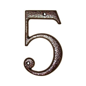 výška: 117 mm hloubka: 9 mm materiál: zinek barva: hnědá Domovní popisné číslo 5 je vyrobené ze zinkoslitiny.