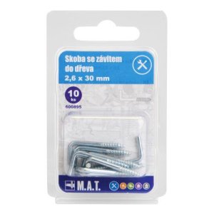 rozměry (D x pr.): 30 x 2,6 mm materiál: Zn 10 ks Skoba se závitem do dřeva 30 x 2,6 mm slouží pro snadné zašroubování do dřeva a následné zavěšení předmětů a břemen.