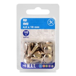 rozměry (pr. x D): 4,0 x 18 mm 10 ks Nýt dutý 4,0 x 18 mm nabízí mnohostranné a variabilní využití pro náročná spojení u různých konstrukčních jednotek.