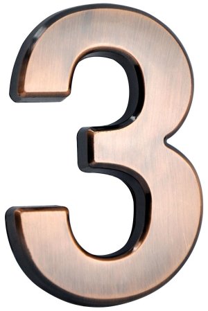 Plastová samolepící číslovka 3 na dům v bronzové barvě.