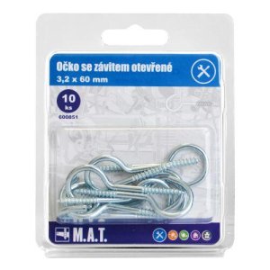 rozměry (D x pr. očka x pr.): 20 x 10 x 3,2 mm materiál: Zn 10 ks Zavřené očko se závitem 20 x 10 x 3,2 mm pro uchycení předmětů a břemen do různých materiálů.