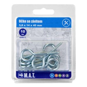 rozměry (D x pr. očka x pr.): 40 x 14 x 3,8 mm materiál: Zn 10 ks Zavřené očko se závitem 40 x 14 x 3,8 mm pro uchycení předmětů a břemen do různých materiálů.