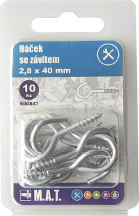 rozměry (D x pr.): 40 x 2,8 mm materiál: Zn 10 ks Háček se závitem 40 x 2,8 mm pro uchycení předmětů a břemen do různých materiálů.