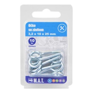 rozměry (D x pr. očka x pr.): 25 x 10 x 3,2 mm materiál: Zn 10 ks Zavřené očko se závitem 25 x 10 x 3,2 mm pro uchycení předmětů a břemen do různých materiálů.