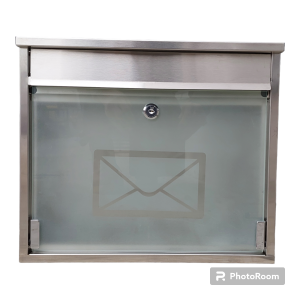 Nerezová poštovní schránka s okýnkem na jmenovku, včetně zámku.