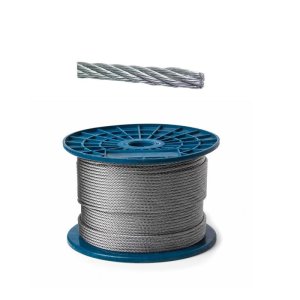 lanko z nerezové oceli AISI 316 ocelové lanko 6 x 7 FC, tvořeno 6 copy splétaných ze 7 pramenů jádro tvoří vlákno pevnost lanek 1770 N/mm vyrobeno dle DIN3055 lanko navinuté na plastové cívce
