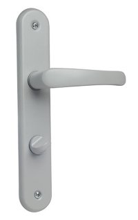Kování MONET-Rozeta F1, WC, STŘ elox. rozměry: - průměr rozety: 50 mm - klika: 107 mm provedení: klika - klika WC povrch: stříbrný eloxovaný hliník Rozetové kování pro interiérové dveře.