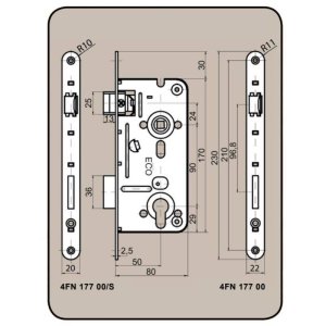 hloubka zadlabání: 60 mm rozteč: 90 mm povrchová úprava: zinek bílý pravolevý Zadlabací vložkový zámek 02-04 jednozápadový bez převodu s otvory pro dělené štíty je univerzální na pravé i levé dveře.