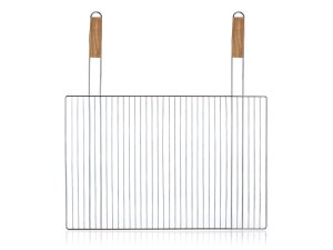 Rošt grilovací BBQ 60 x 40 cm. rozměry: 60 x 40 cm materiál: ocel, dřevo Hranatý grilovací rošt BBQ s dřevěnými rukojeťmi využijete pro snadné grilování masa, zeleniny apod.