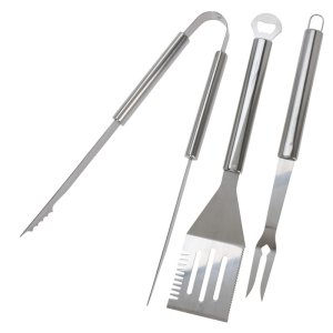 3dílná sada grilovacího náčíní obsahuje kleště, obracečku a vidličku z nerez oceli.