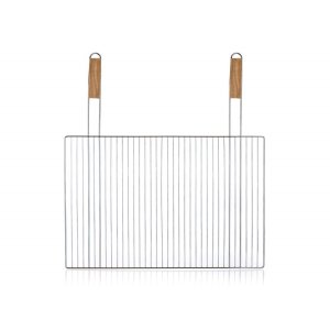 Grilovací rošt hranatý BBQ s dřevěnými rukojeťmi o rozměrech 60 x 40 cm využijete pro snadné grilování masa, zeleniny apod., je vhodný také pro zděné zahradní grily.