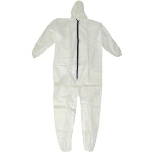 kombinéza s elastickou kapucí, elastické manžety a pas zapínání na zip polypropylen 40 g/m2 barva bílá prodyšný a lehký materiál chrání běžné pracovní oblečení