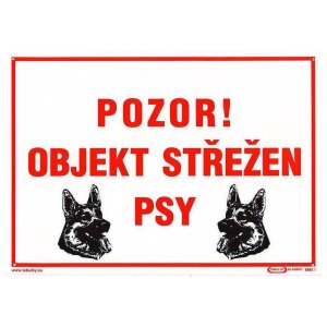 Tabulka - - POZOR! OBJEKT STŘEŽEN PSY 210 x 297 mm, (A 4), PH. rozměry: 210 x 297 mm materiál: plast Bezpečnostní tabulka, jejímž účelem je opatření a snížení rizik.