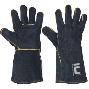 Celokožené rukavice z hovězí štípenky v délce 35 cm, s bavlněnou podšívkou a krytými švy Certifikát: svářečské práce - typ A Materiál podšívky rukavice: bavlna Materiál rukavice: hovězí štípená kůže …