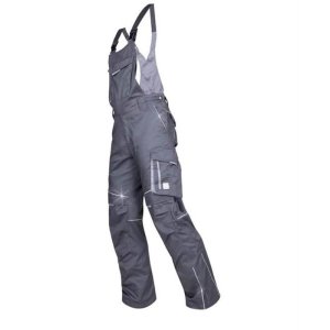 kalhoty montérkové s laclem LPAO, šedé materiál: polyester 65%, bavlna 35%, gramáž 245 g/m2 7 kapes, včetně 4 zapínaných na suchý zip kapsa na mobilní telefon dvojité švy regulace šířky v pásu pomocí …