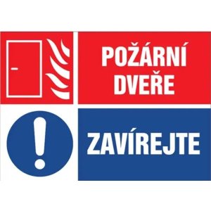 Materiál: samolepicí fólie Rozměry výrobku 105 × 148 mm Teplotní odolnost do 80 ?C Text Požární dveře/ Zavírejte Třída hořlavosti F1 (DIN 53 438-3) Hmotnost 0,01 kg
